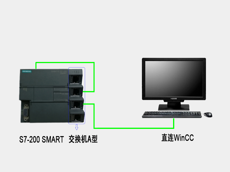 通過(guò)多功能交換機(jī),可將西門(mén)子S7-1200/1500/S7-300PN PLC與西門(mén)子SMART LINE精彩系列觸摸屏連接。或S7-200SMART 直連WinCC功能。